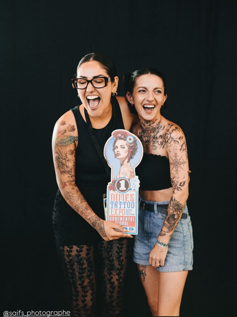 Au milieu de cette effervescence, notre regard était naturellement attiré par l’art de la ligne fine et de l’ornemental. Voir d’autres artistes spécialisés, échanger sur les techniques pour obtenir un trait parfaitement net, observer leur gestion du détail… Ces conversations sont une source d’inspiration inépuisable. Cela nous conforte dans la voie que nous traçons à Nîmes avec Encorps Studio : celle de la précision, de l’élégance et du sur-mesure.